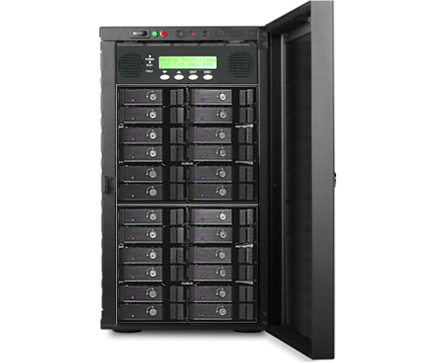 DS24-6TI4aシリーズは、24台の2.5インチ・ホットスワップ対応 リムーバブルベイと、1.2GHzのデュアルコアRAID-on-Chip(ROC)プロセッサーを使用して、RAIDレベル0, 1, 10(1E), 3, 5, 6, 30, 50, 60, シングルディスク/JBODのサポート、PCI-Express 3.0内部バス、オンボード2GB DDR3-1866 ECC SDRAM、iSCSIオフロードエンジンを搭載したハードウェアRAIDコントローラを、堅牢なメタル製ミドルタワーケースに組み込んだストレージ・システムです。