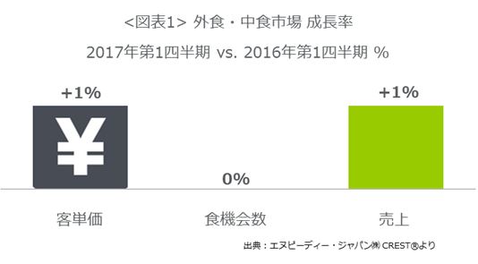 2017年2月24日(金)には、プレミアムフライデーが初実施され、経済への好影響が期待されました。また、トランプ氏がアメリカ大統領に就任するなど経済的に大きな影響が懸念される出来事もありました。そのような2017年第1四半期の外食・中食市場はどのような状況だったのか、エヌピーディー・ジャパン(株)が提供する外食・中食市場情報サービス『CREST(R)マーケットトレンドレポート*2』から分析を紹介します。