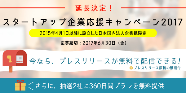 プレスリリース1回配信無料期限:2017年7月31日(月)18:00まで
