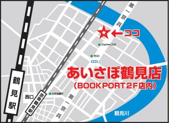 『あいさぽ鶴見店』はJR京浜東北線・京急線の鶴見駅から徒歩13分、第一京浜(国道15号線)沿いBOOKPORT鶴見店内にございます。広い駐車場完備、お子様をお連れのお客様もご安心のキッズスペースを用意しておりますので修理の待ち時間は店内で快適にお過ごしいただけます。