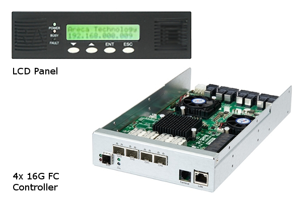 DS24-12SF4aシリーズ および DS24-12SF4aRシリーズは、ARECA社のハードウェア RAIDコントローラを使用した、クアッド 16G FC ホスト接続ストレージシステムです。