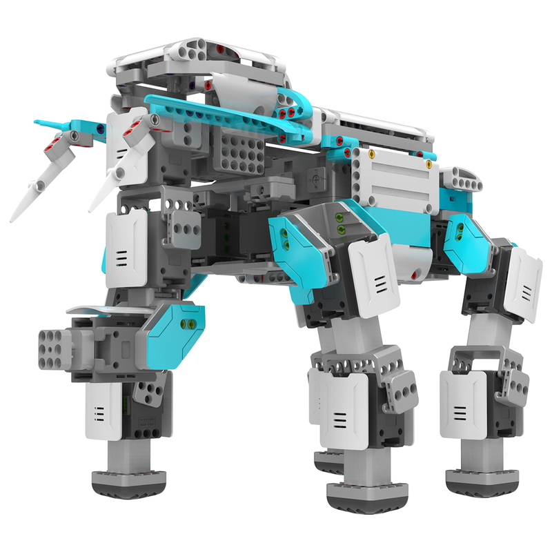 16個のスムースサーボ、メインコントロールボックスなど、675個のパーツから構成されています。難易度別に用意されたゾウ、キリン、人間、カマキリ、サイ、オオカミのプリセットデザインを備え、独自の構成やデザインでまったく新しいロボットを組み立てることもできます。