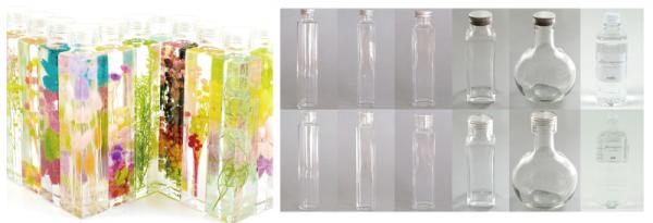 高純度なミネラルオイル(鉱物油)と、お好みのプリザーブドフラワーやドライフラワーを交互にボトルに入れて密閉するだけで、センスあふれるルームアクセサリーが手軽に作れます。