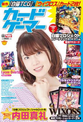 カードゲーム専門誌「カードゲーマーvol.34」は、『白猫プロジェクト トレーディングカードゲーム』限定PRカードや、『カードファイト!! ヴァンガード』特製PRカード、『Lycee Overture』限定プロモカード、『クルセイドシステム カードゲーム』限定PRカード、『WIXOSS-ウィクロス-』限定プロモカード×2枚など、豪華付録でお届けします。表紙は「白猫プロジェクト」シャルロット役の内田真礼さん!今号も永久保存必至の内容です!