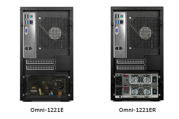 リダンダント電源モデルのOmni-1221ERシリーズでは、電源ユニットの異常を知らせるアラーム回路を搭載し、85%以上のエネルギー変換効率を達成した80Plus ブロンズ規格500W(1+1)リダンダント電源を搭載しています。各電源ユニットの自動変速4cmファンには、長寿命ダブル・ボールベアリング・ファンを使用してシステム動作音を低減しています。