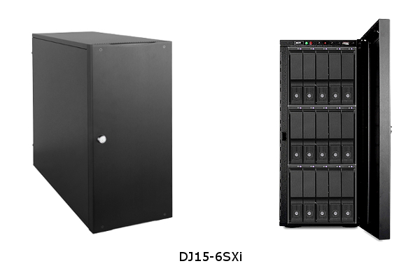 DJ15-6SXi シリーズは、15台の 3.5インチ トレーレス ホットスワップ対応 リムーバブルベイベイと、Intel社 24 チャンネル SAS エクスパンダーを、堅牢なメタル製ミドルタワーケースに組み込んだ JBOD サブシステムです。