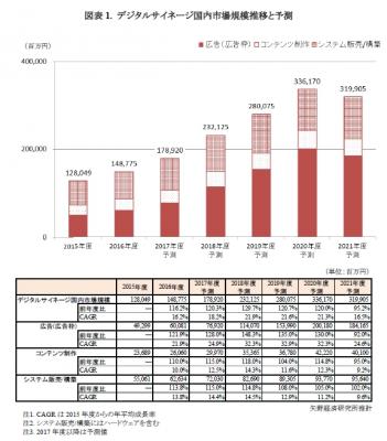 ◆東京オリンピック・パラリンピックなどを契機に2020年度は3,361億7,000万円を予測、その後も地方における観光用途などでデジタルサイネージ設置は増加基調