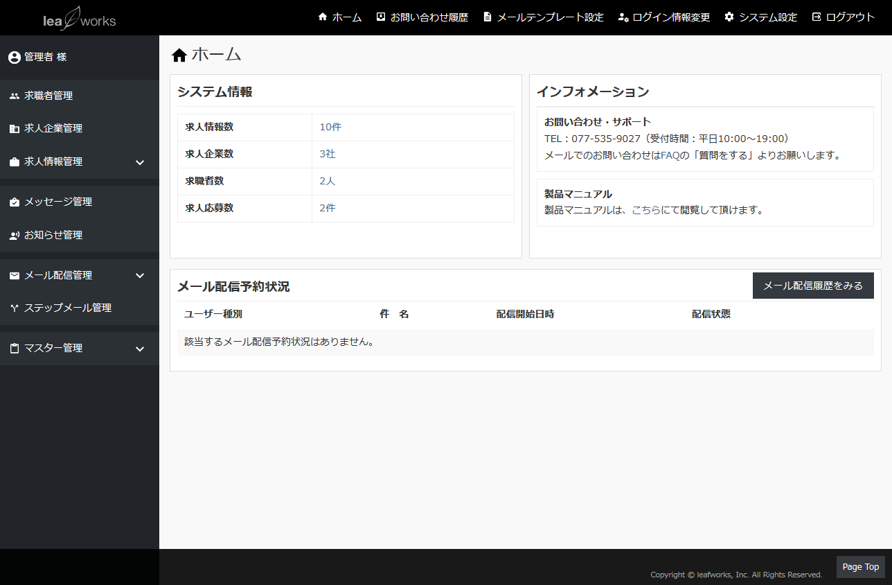 求人企業や求職者に対してマイページを渡すことや、応募情報の管理など