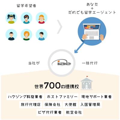手続、顧客管理、最新の学校情報入手、マーケティング支援までiaeが持つ留学ノウハウのすべてをパッケージ化し、学校との契約交渉や請求業務などの面倒な作業はiaeがまとめて対応するので、ビジネスパートナーの方々は自社のマーケティング、プロモーションだけに集中していただけます。