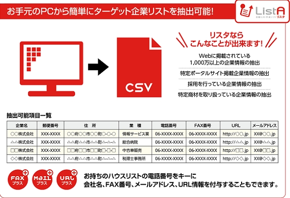 ・既存リストへの情報付与(FAX、URL、メールアドレス)