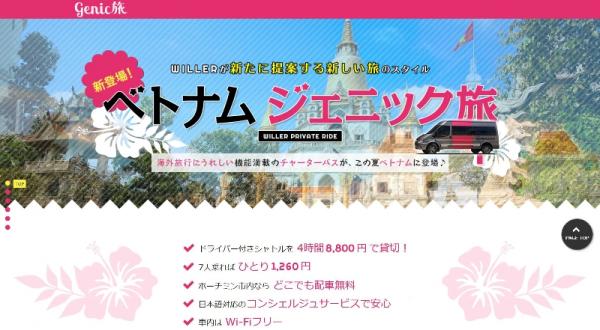 WILLER株式会社(代表取締役:村瀨 茂高 以下ウィラー)は、ベトナムの行きたいところに自由に行けて、みんなでリビングにいるような感じで楽しめるジェニックビークルを6月12日(月)より販売開始します。定員7名の車輌をチャーターすると、1台半日8,800円、一日11,800円からと安心、快適なサービスを多くの人が気軽にご利用できる料金での提供を実現しました。