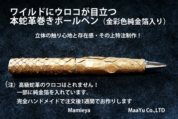 〇ヘビ革巻き高級ボールペン(金彩色順金箔付き)