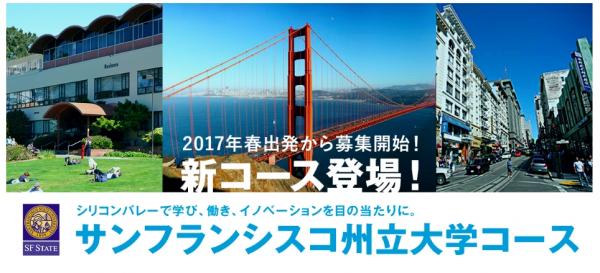 留学を通してグローバル人材育成を行っている株式会社ICCコンサルタンツ(所在地:東京都渋谷区、代表取締役社長 曽根靖雄、以下ICC)は、大学での学びと現地企業インターンシップが経験できるビジネス留学IBPプログラム(以下IBPプログラム)において、2017年6月(レギュラーコースは5月31日、アドバンスコースは6月6日)より新たにサンフランシスコ州立大学コースを開始しました。同大と業務提携を結び、同大の国際経営学部にて実施となります。同コースは、年二回(春・秋)開講。一期生はレギュラーコースとアドバンスコース合わせて7名が派遣されました。2018年度は40名程度を派遣予定です。また、これに伴い株式会社ICCコンサルタントとしては6番目の海外現地オフィスをサンフランシスコに設置いたしました。