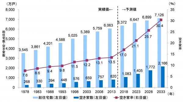 出所)実績は総務省「住宅・土地統計調査」より。予測値はNRI。