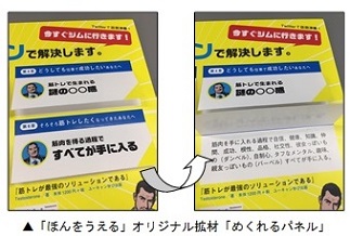 「ほんをうえる」では、2016年10月より本書の促進を開始。Twitterで本の内容が話題となっていたことから、「書店店頭でもゲーム感覚で内容を知ってもらいたい」と考え、「ほんをうえる」オリジナルの新しい拡材をデザイン。本の章立てが書かれている箇所をめくると、本の内容を読むことが出来る「めくれるパネル」を作成し、店頭展開を支援してきました。今年1月には再度Twitterで話題となり、8万RTを記録。6月9日重版分で10万部に達しました。7月にはシリーズ第2弾のTestosterone/Miharu共著『尻トレが最強のキレイをつくる』の刊行が予定されています。