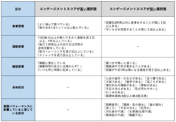 ・生活習慣を含むフィジカル面(身体面)の改善により、エンゲージメントを強化できる可能性が示唆されました。