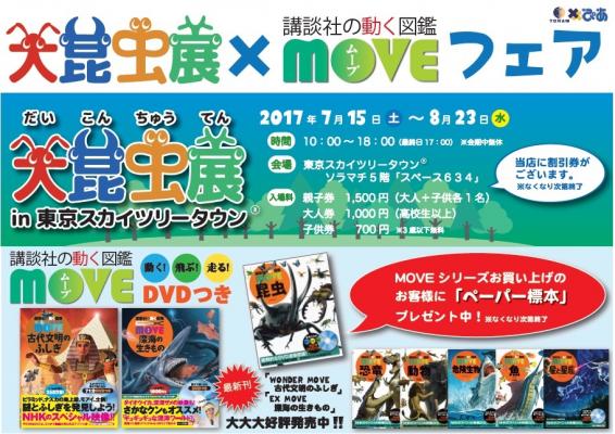 株式会社トーハン(本社・東京都新宿区、藤井武彦社長)は、ぴあ株式会社(本社・東京都渋谷区、矢内廣社長)との共同事業「TOPIA Project」において、講談社「動く図鑑MOVE」と「大昆虫展in東京スカイツリータウン」連動企画を6月23日(金)~8月23日(水)まで全国約1,000書店にて実施します。