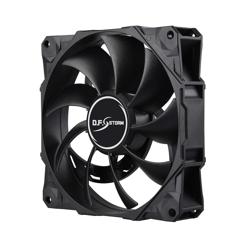 D.F.STORMは、最大回転数3,500 RPM対応の高風量120mm PWMファンです。ファンの羽を10秒間逆回転させ、その後正回転で動作させる自己洗浄機能Dust Free Rotation technology、ファンブレードの面積、傾斜角などの改良により最大30%のエアフローを増加させる独自のStorm-Flow bladesを搭載することで、直進性の高いエアフローと優れた静圧性能を発揮します。回転範囲を3段階で切り替え可能なスイッチ、特許を取得した滑らかな回転を実現するツイスターベアリング構造によりMTBF(平均故障間隔)16万時間を誇る優れた信頼性を提供します。