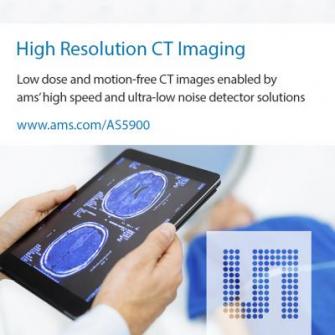 ams、製品マーケティングマネージャ、ジョセフ・パートルは次のようにコメントしています。「AS5900の特長である超低ノイズと高解像度によって、CTスキャナメーカーはよりよい画像をより高いフルスケールレンジで生成できるようになり、ピクセルサイズにも柔軟性を持たせることができるようになります。この新しい高性能電流デジタル変換器をベースにした次世代CTスキャナ画像の品質と鮮やかさは、医師の方々にはその明らかな違いが分かるでしょう。高速かつ低電力消費での低ノイズの作動により、回転速度が最高の時でも動きアーチファクトのないCT画像が得られるだけでなく、患者さんへの放射線量も抑えることができるのです」
