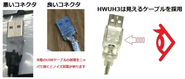 HWUH3は、買って使ってみるまでノイズ対策が判らない。買ってケーブルを剥いでみないとノイズ対策が判 らないという問題を抜本から解決します。