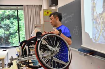 講義では、堀江車輌電装の社員で障がい者スポーツ指導員の資格保持者が講師を務めました。参加者からは、「大学の授業で話を聞くよりも、体験を通して車椅子の大変さを感じた。これから積極的に声をかけていきたい」「自分が車いすに乗ることで、障がい者の気持ちが少しわかったような気がする」「初めて車いすに乗ることを体験して、体が思うように使えない気持ちを知ることができた」「普通の車いすと競技用の車いすの違いを感じることができた。2020年の東京パラリンピックに関わってきたいと感じた」などの感想がありました。