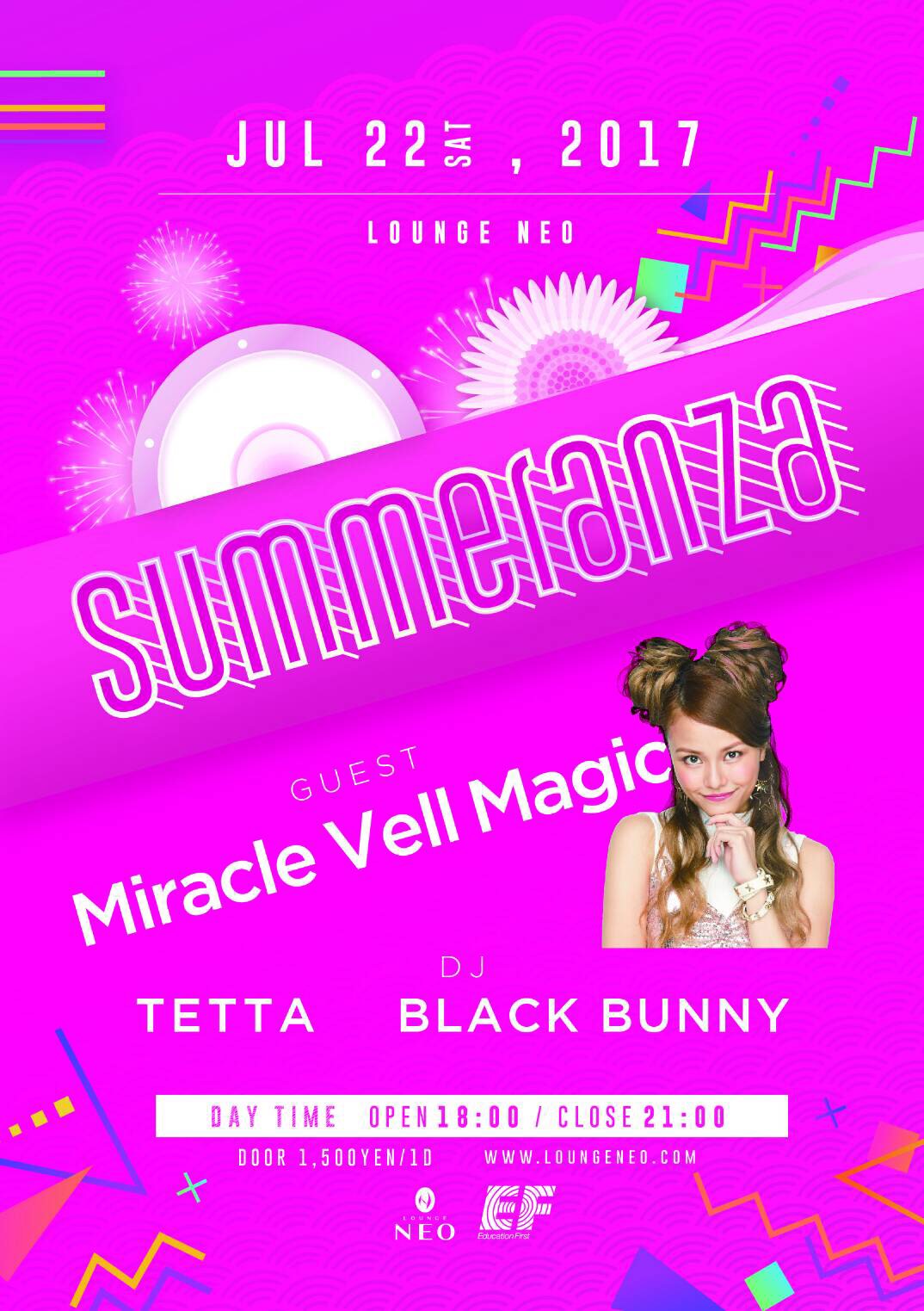 過去にイギリスやマルタで熱狂的な盛り上がりをみせてきたクラブフェス「EF SUMMERANZZA」(イー・エフ・サマランザ)が3年ぶりに日本再上陸します。当日は、若者に大人気のLOUNGE NEOとclubasiaでDAY PARTYとNIGHT PARTYの2部構成で実施。今回は、若者を中心に人気沸騰中のMiracle Vell Magic、DJ SARASA、AISHAをスペシャルゲストに迎え、EFが夏の夜を盛り上げます。