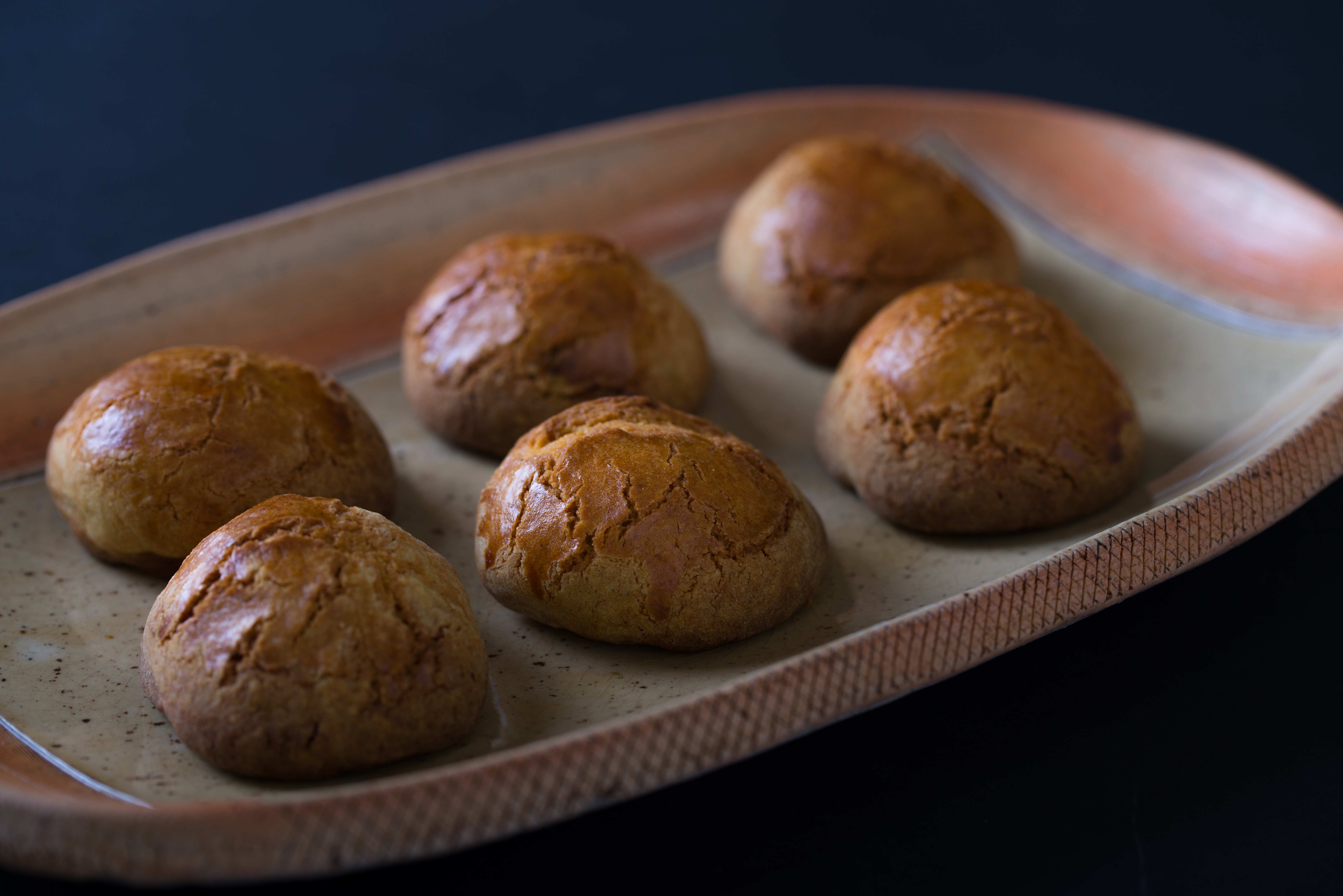 Taikiの看板メニューのチーズ饅頭は1日500~600個も売れる大人気商品。さくさくの食感とたっぷりのチーズが特徴。バターのみを使って焼き上げ,卵には都城市の赤卵を使用。こだわりの製法でルウ王子が調合したカレースパイスを生地に練りこみ美味しい宮崎カレーチーズ饅頭に仕上げました。
