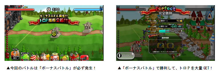 獲得トロPが2倍以上となる「ボーナスバトル」となります。ひとりではもちろん、目の前にいる友達や