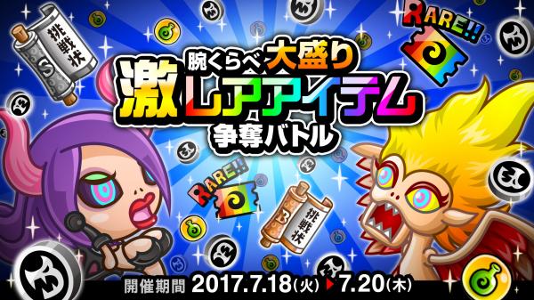 豪華レアアイテムがいつもより多くもらえる「腕くらべ大盛り激レアアイテム争奪バトル」を開催いたします。