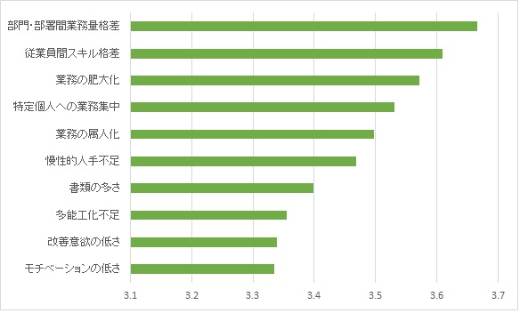 (2) 縦割りの弊害による仕事の平準化不足が組織内の特定部門・部署でいびつな残業集中を発生させていると考えられる