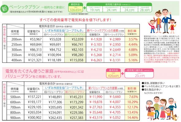 「コープでんき」には、一般的なご家庭向けの『ベーシックプラン』と、電気をたくさん使うご家庭向けの『バリュープラン』の2つの料金プランがありますが、今回の値下げは両プランの料金改定です。