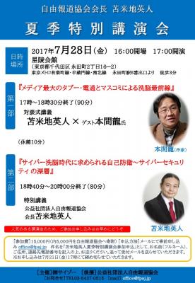 自由報道協会会長 苫米地英人夏季特別講演会を下記日程で開催致します。