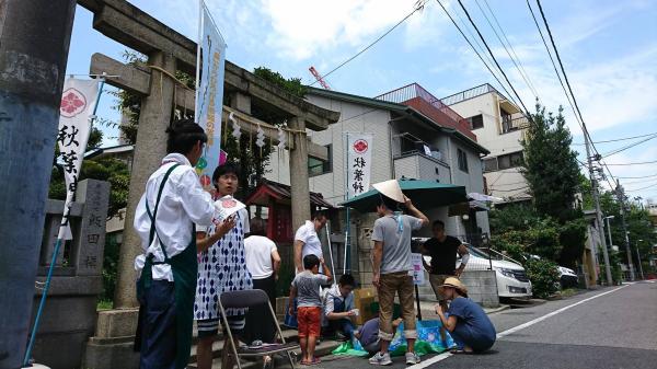 色とりどりの有機野菜と秋葉神社の涼やかな木陰が相まって、農地0%の台東区には似つかわしく無いほど土の優しい香りが広がる。お客さんが地元の野菜をみつけ「なつかしい!」という声や、最近話題の野菜をみつけ「これこうやって食べると美味しいんだよ!」など、逆に地域の方々に教えていただくことも多々あった。それぞれのブースでは、そのこだわりについて語る、お客さんとの穏やかな会話。