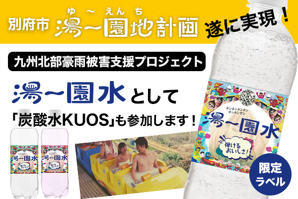 株式会社OTOGINO(オトギノ:代表取締役社長 鬼武公洋 本社 大分県日田市北友田 2 丁目 2123 番地 1)は、E-コマースにて販売している主力商品、うまさを感じる強炭酸水「KUOS-クオス-」と大分県別府市が3日間限定で開催する温泉と遊園地を融合させた遊べる温泉都市構想『湯~園地』がコラボした「湯~園水(ゆ~えんすい)」を、OEM生産しました。