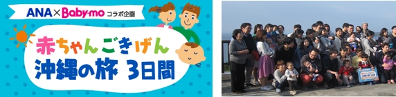 同ツアーでは、羽田=那覇間の定期便(往復)の機内後方を赤ちゃんツアー専用ゾーンに設定し、授乳コーナーの設置や子育て経験豊富なママさんCAの配置など、機内で赤ちゃんが泣いても大きな声を出しても安心な環境を整えました。育児雑誌Baby-moで活躍するカメラマンによる撮影会や、ツアー協賛企業からご提供いただいた赤ちゃんとの旅行を楽しむアイテムとして、おむつや粉ミルク等、様々なサービスがあり、参加されたママ・パパから「はじめての飛行機旅行で不安もあったが、スタッフのサポートで安心できた。」「荷物も少なくてとっても楽だった。また参加したい。」と嬉しいお声を多数いただきました。