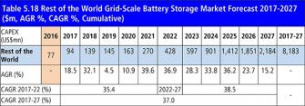 5. 世界の主要国のグリッドスケールの電池貯蔵市場予測 2017-2027年