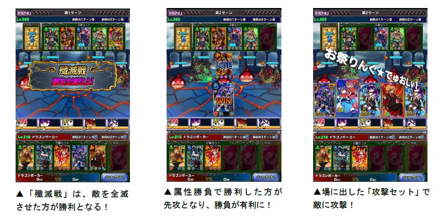 勝利条件:終了時のBPが多ければ勝利、もしくは相手のモンスターを全滅させれば勝利