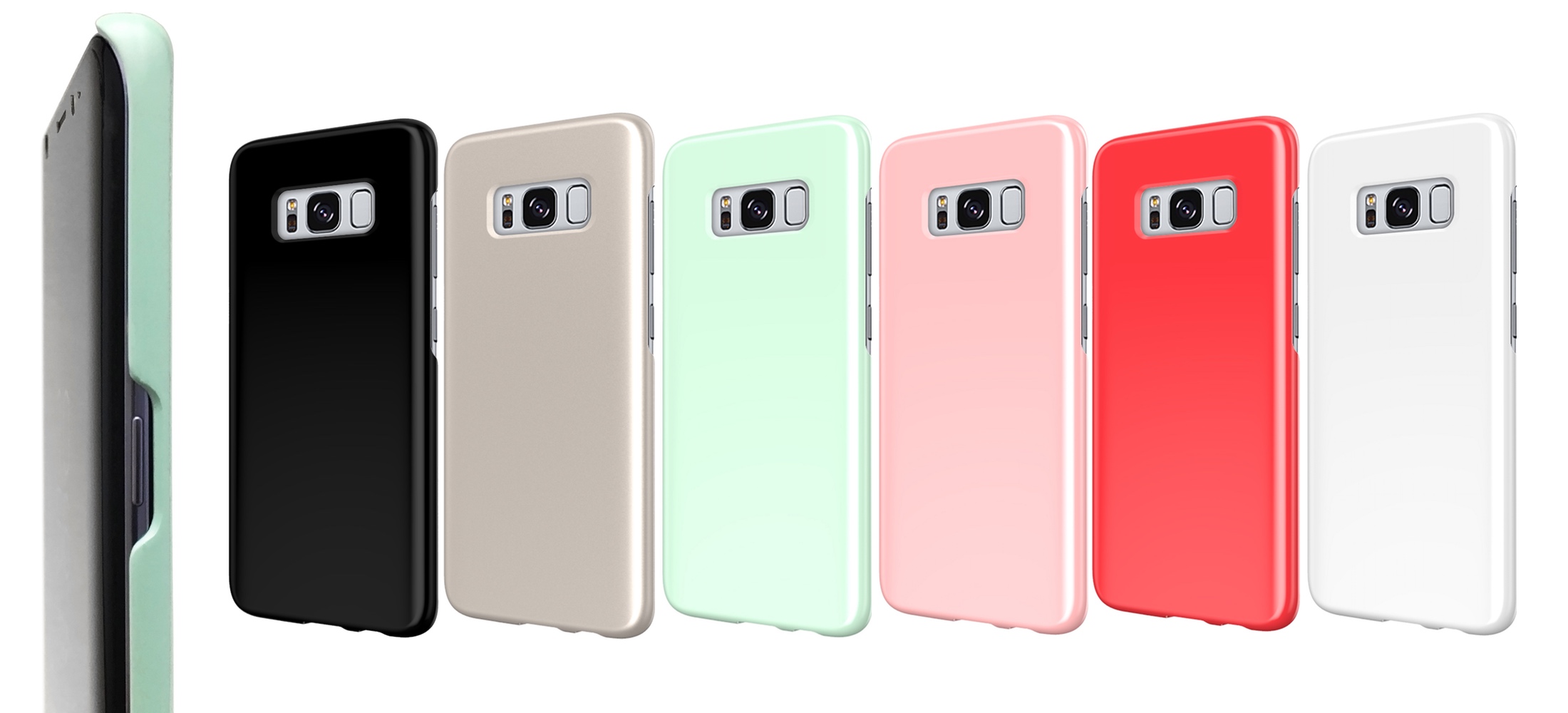 Galaxy S8の特徴であるエッジスクリーンの機能に対応し、液晶の長辺側をギリギリまで後退させた構造になっておりながら、液晶面を下側にして伏せて置いた場合でも、液晶が直に机や床などに触れることがないよう、空間を確保する設計となっています。