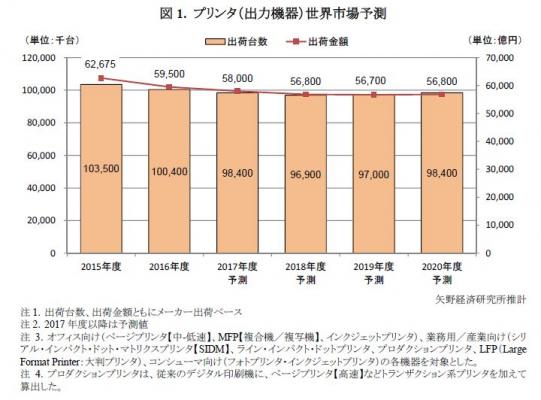 ◆2016年度のプリンタ世界出荷金額は前年度比94.9%の5兆9,500億円