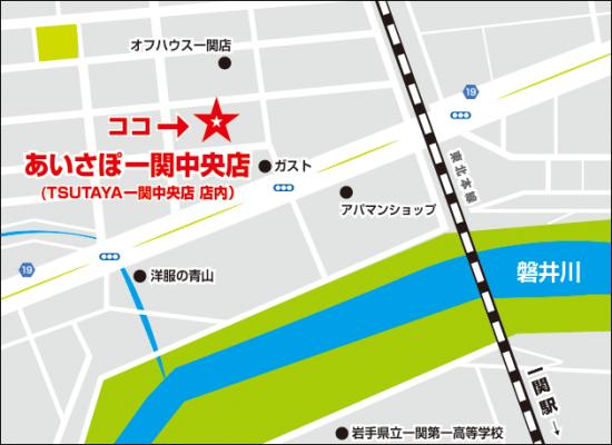 所 在 地 :〒021-0007 岩手県一関市上日照2-3(TSUTAYA一関中央店内)