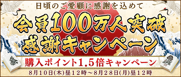 今回開催するキャンペーンでは、黄金麻雀牌(100万円相当)を抽選で1名様に、現金100万円を新規登録者の中から抽選で1名様に、特製の「麻雀運祈願オリジナルお守り」を抽選で100名様にプレゼントします。