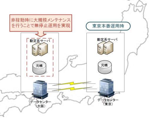 現在、セブン銀行の勘定系システムは、本番機とバックアップ機を東阪両センターに分けて運用しております。今般、日本の金融機関で初めて、勘定系システムを東阪両センターで交互に本番機として運用する方式を導入いたします。定期的に本番機を入れ替えることにより、BCPの高度化と24時間365日無停止連続運転が可能となるため、セブン銀行のお客さまに対して、これまで以上に安心してご利用いただけるサービスを提供できるようになります。