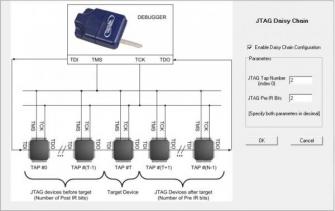 JTAG Daisy Chainingは、ハードウェアのレイアウトを簡素化し、生産性を向上させる重要な機能です。デイジーチェーン設定でデバッグするのが最も難しいのは、正しい初期パラメータを選択することです。PEmicroのテクニカルサポートは、これらのパラメータを選択するのに役立ちます。これが完了すると、ユーザの介入なしに適切に動作が可能です。