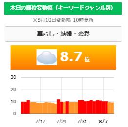 順位変動の状況に応じて、表示されるグラフの色が代わりますのっで、パッと見るだけで、順位変動の状況がわかります。
