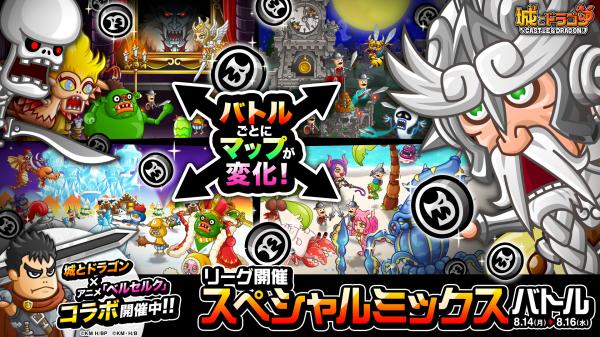 8月14日(月)より、全国のユーザーたちを相手にリアルタイムで戦い、ランキングを競い合う「リーグ」を開催いたします。今回のリーグは、バトルごとにマップがランダムで変化する「スペシャルミックスバトル」となります。