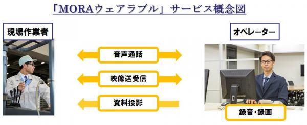 「MORAウェアラブル」は、現場作業者とオペレーターとをインターネットを介して接続し、映像・