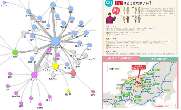 さらに、「ツアーでなく個人でアルペンルートへアクセスする方法(マイカーでのアクセス、扇沢へのアクセス)が知りたい」「周辺の金沢/松本などもついでに回りたい」というニーズも抽出できたため、車でのルートや周辺観光地のトピックも追加しました。