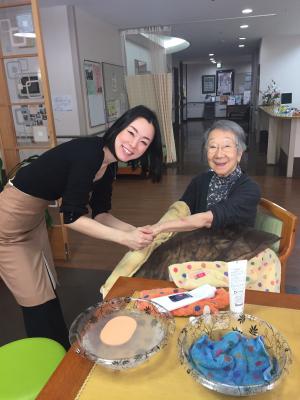弊社では、老人ホームの入居者に対して、ハンドマッサージや手を触れてお話しを聞くなどのボランティア活動を通し、より多くの方に手を通して癒しを与えていきたいと思っております。