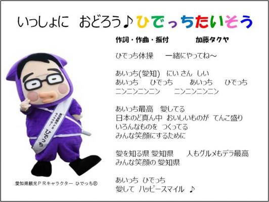 「ひでっち体操」は 株式会社アルファポイントが、愛知の観光物産展を受託するに際して愛知県に提案し、採択されたもの。