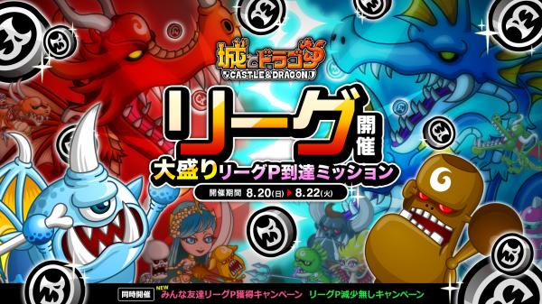 8月20日(日)より、規定のリーグPに到達するごとに、レアアバター券やドラゴンメダルなどの報酬が